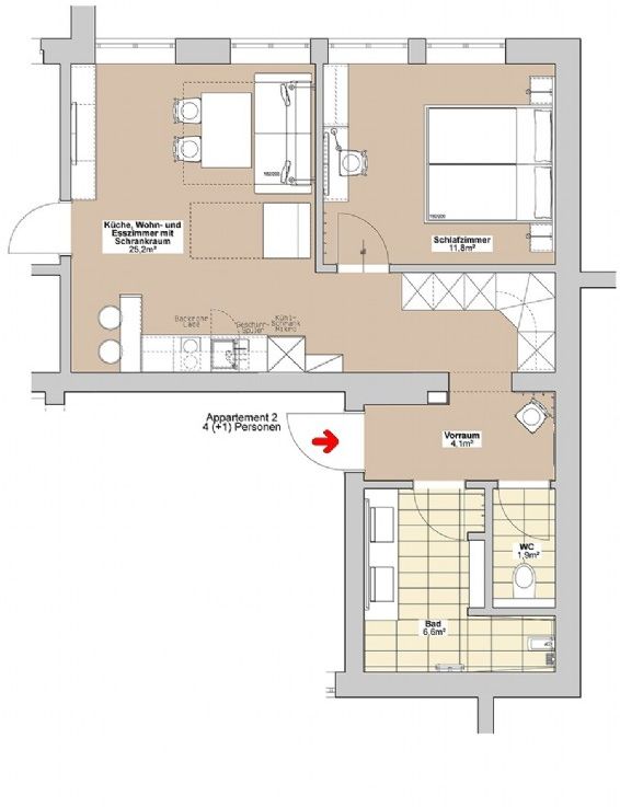 2 - 5 Personen (zusätzliches Babybett möglich)