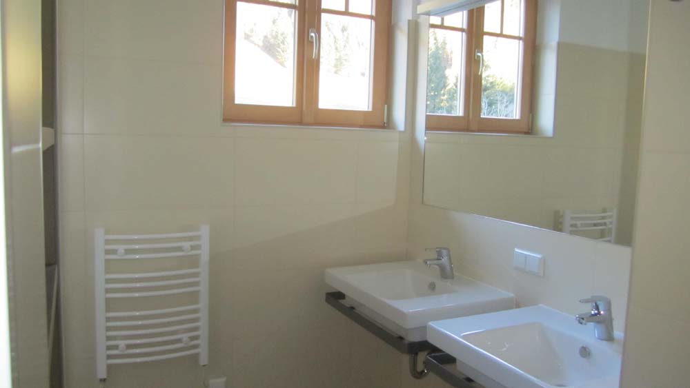 In Ferienwohnung 3 befindet sich außerdem ein helles Badezimmer mit Doppelwaschbecken, Föhn, Handtuchtrockner und Dusche sowie ein abgetrenntes WC. Verbringen Sie Ihren nächsten Urlaub in unserer gemütlichen Ferienwohnung in der wunderbaren Bergwelt der Steiermark!
